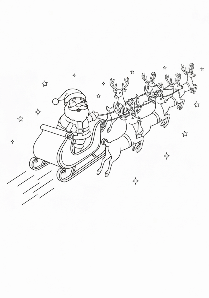 A flying sleigh pulled by reindeer never gets old! Children can color the night sky, sleigh bells, and Rudolph’s famous red nose.