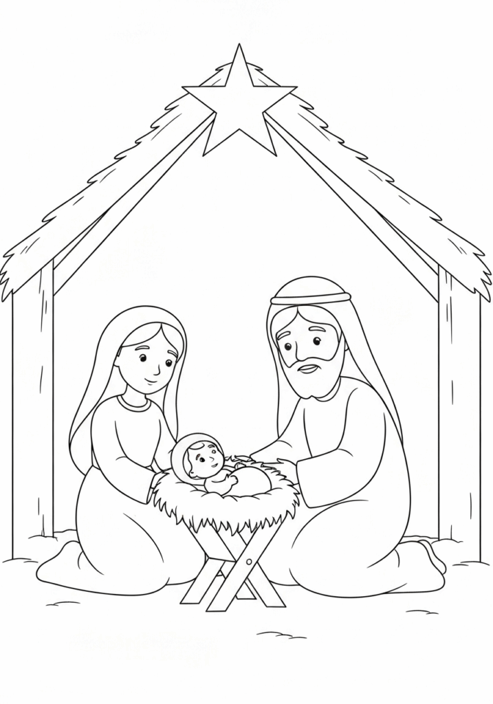 A calm, faith-filled scene featuring Baby Jesus, Mary, and Joseph — ideal for families who love to celebrate the true meaning of Christmas.