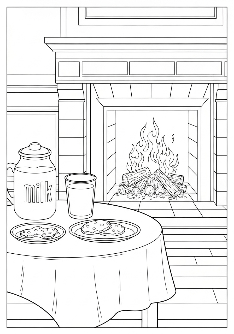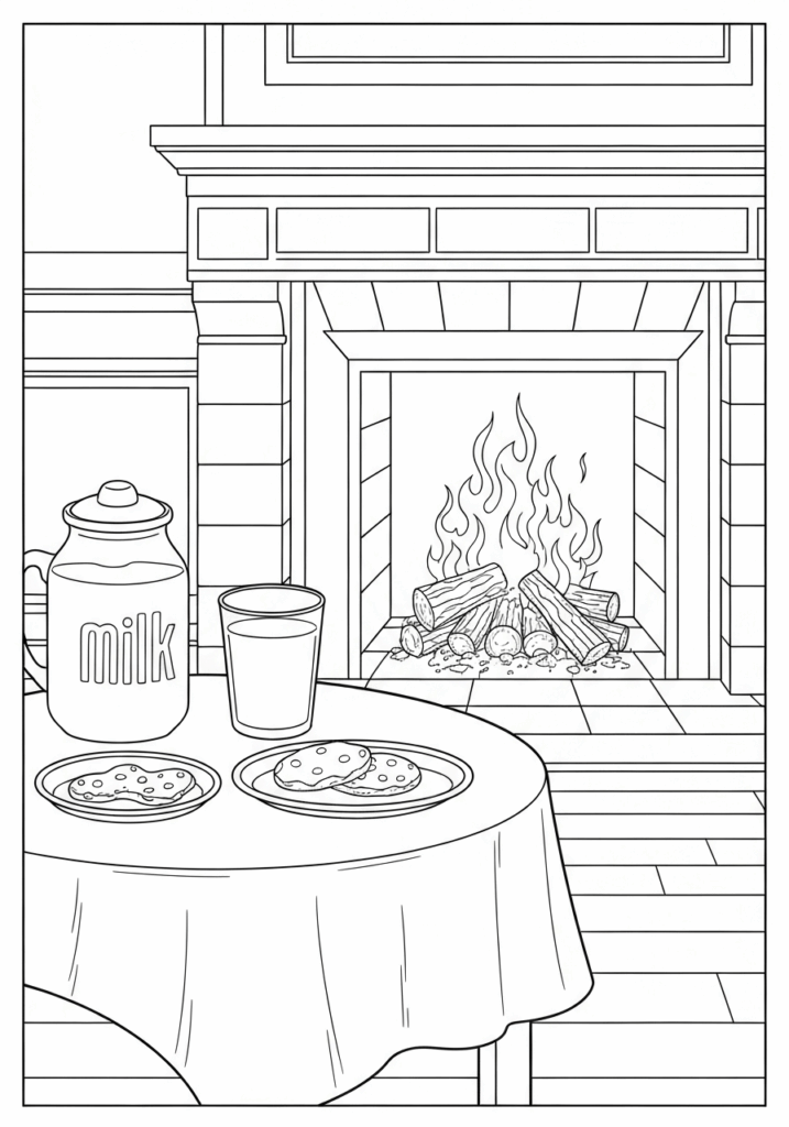 What’s Christmas Eve without a plate of cookies and a glass of milk for Santa? Kids can color their own cozy Christmas night scene.