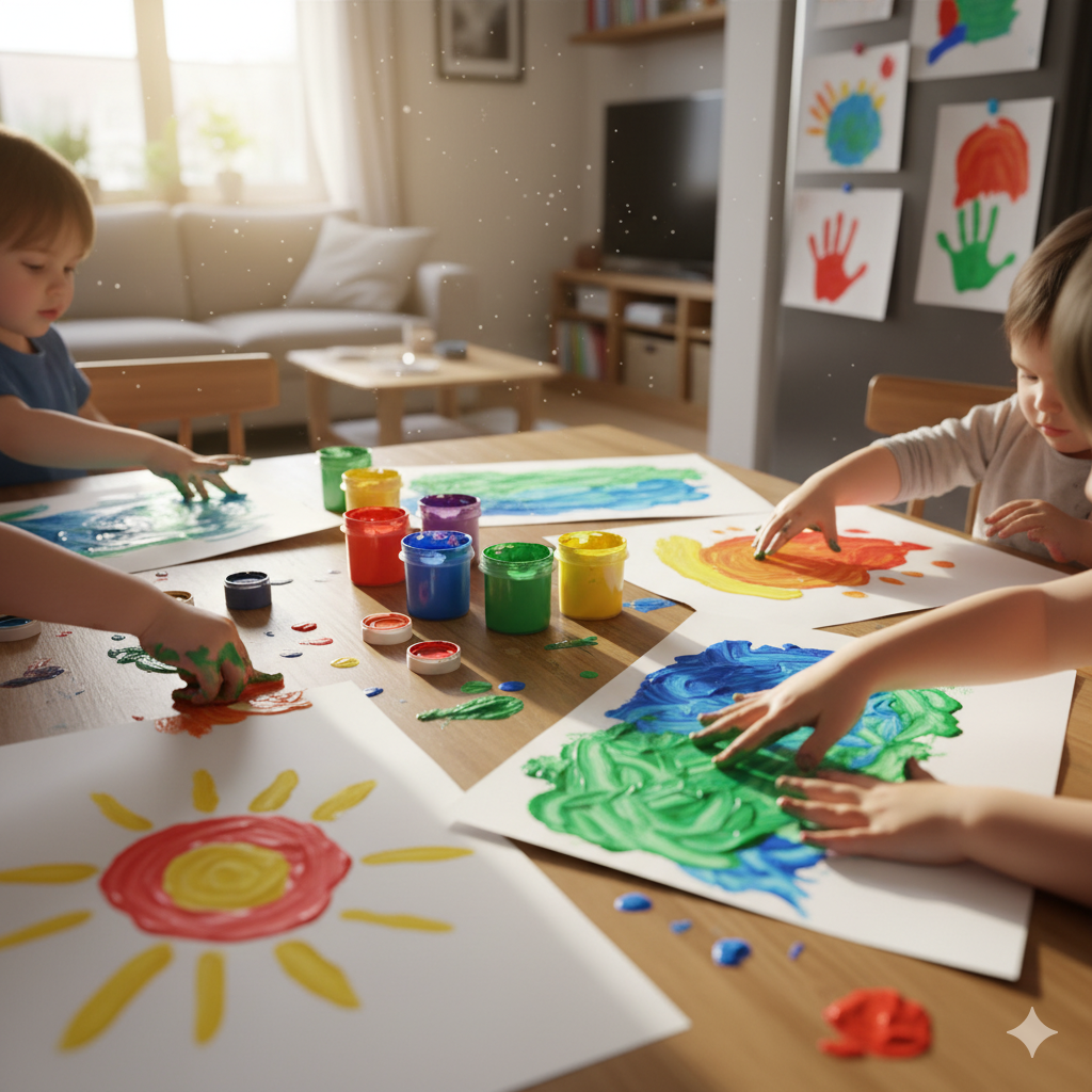 - Finger Painting Abstracts – No brushes needed, just hands and lots of fun!