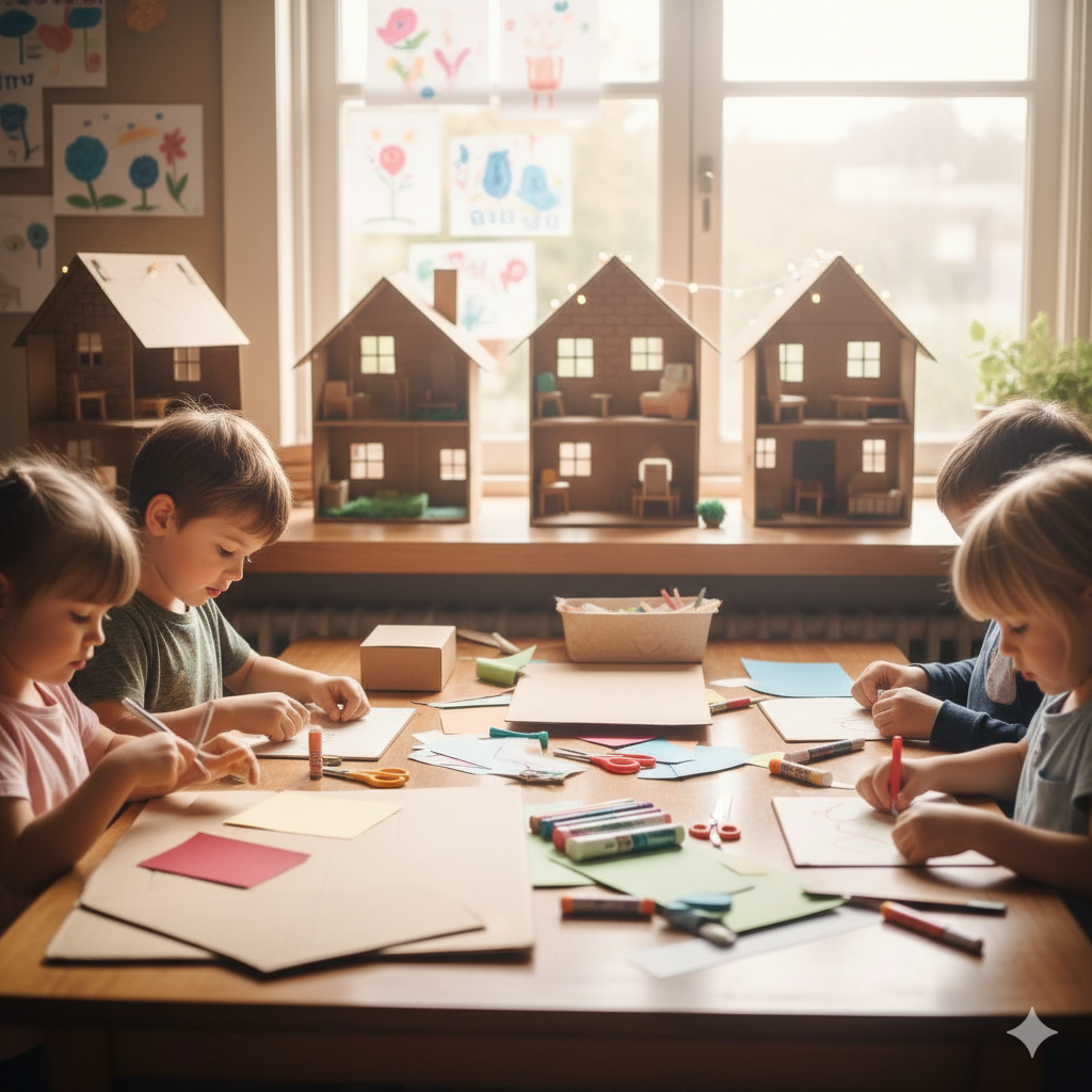 - Cardboard Dollhouses – Use shoe boxes or cereal boxes to build mini homes.