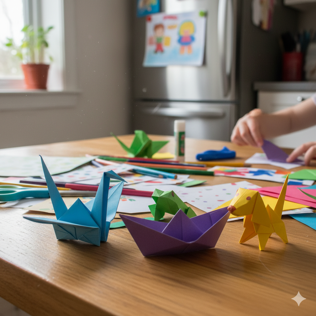 - Origami Fun – Fold frogs, boats, or birds and race them across the table.